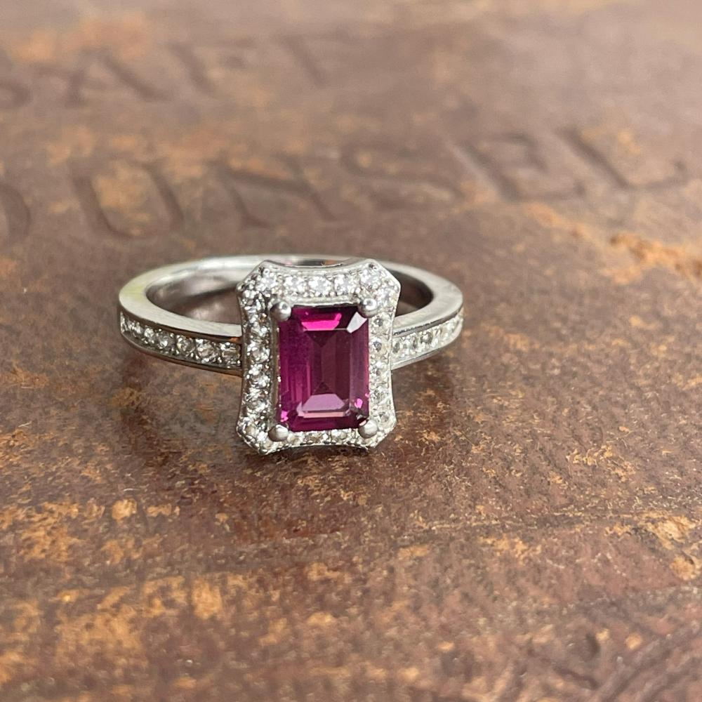 - خاتم فضة 925 من حجر الجارنيت الطبيعي عالي الجودة والصفاء يتميز بتصميم أنيق وعصري من مجوهرات فيرا الفاخرة مرصع بحجر الجارنيت ومزين بأحجار الزركون عالية الجودة تضفي لمسة من الفخامة على الخاتم