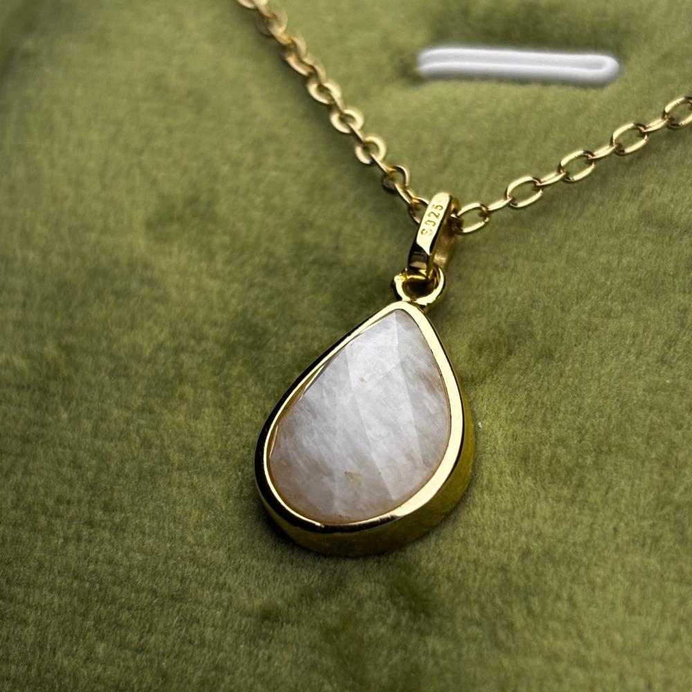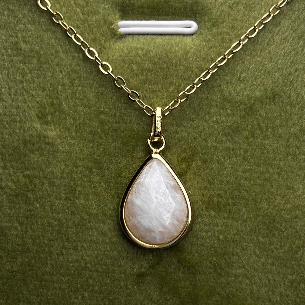 قلادة من حجر القمر الطبيعي مطلي ذهب