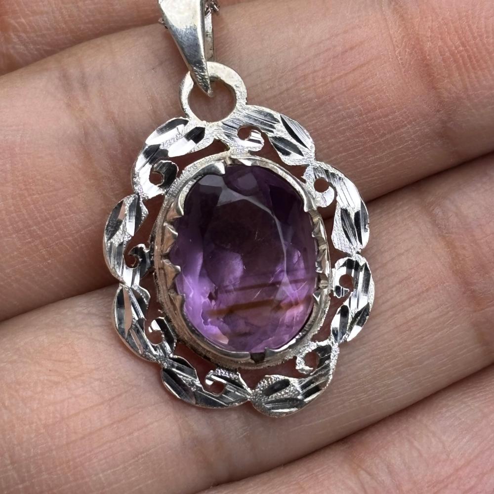 قلادة من حجر الجمشت الطبيعي صياغة يدوية فضة عيار ٩٢٥