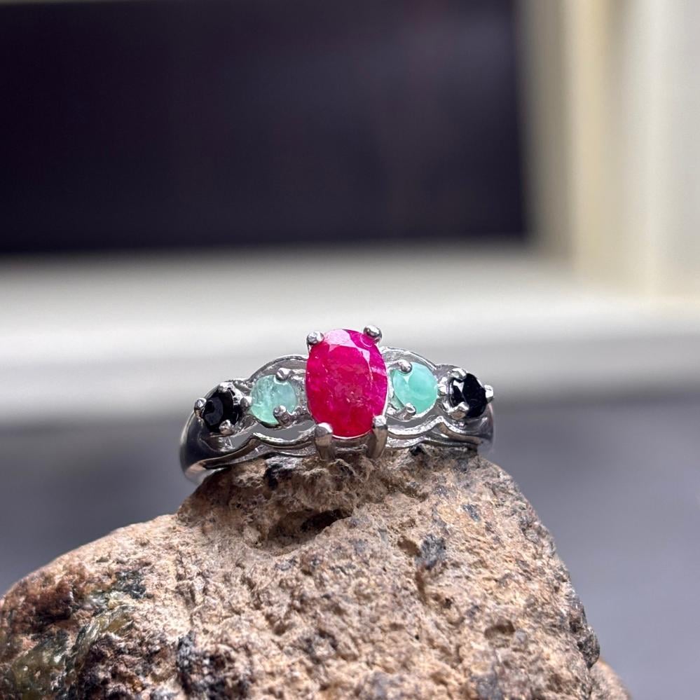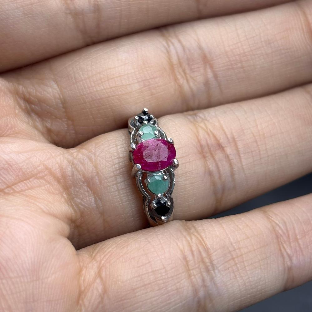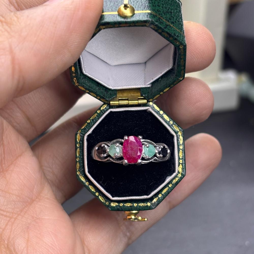 خاتم بتصميم مميز ٣ احجار ياقوت وزمرد وزفير
