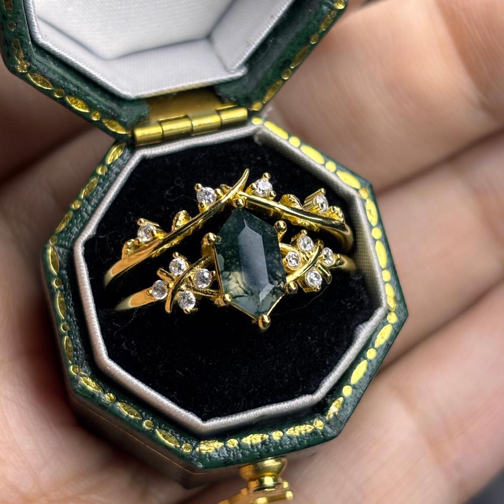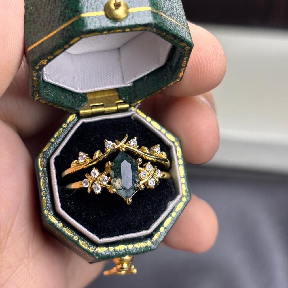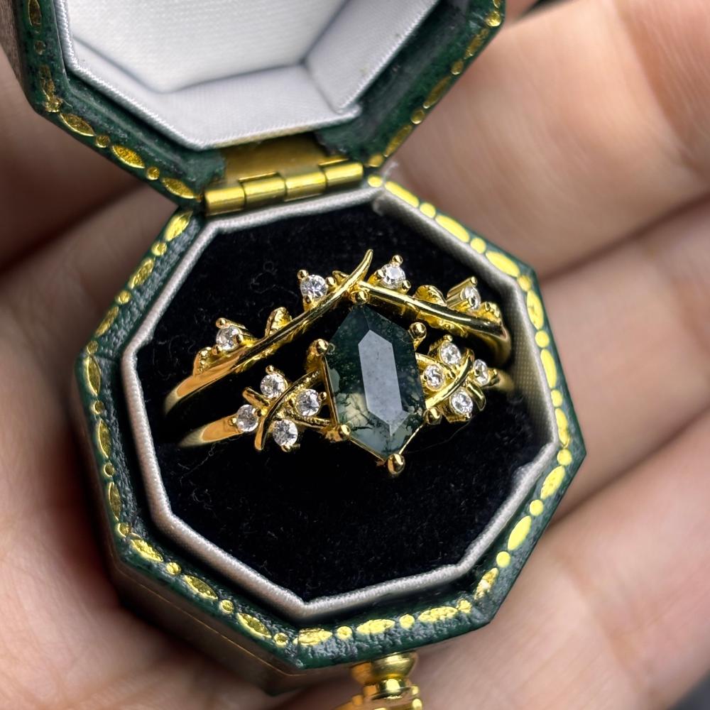 خاتم توينز من حجر العقيق العشبي مطلي ذهب