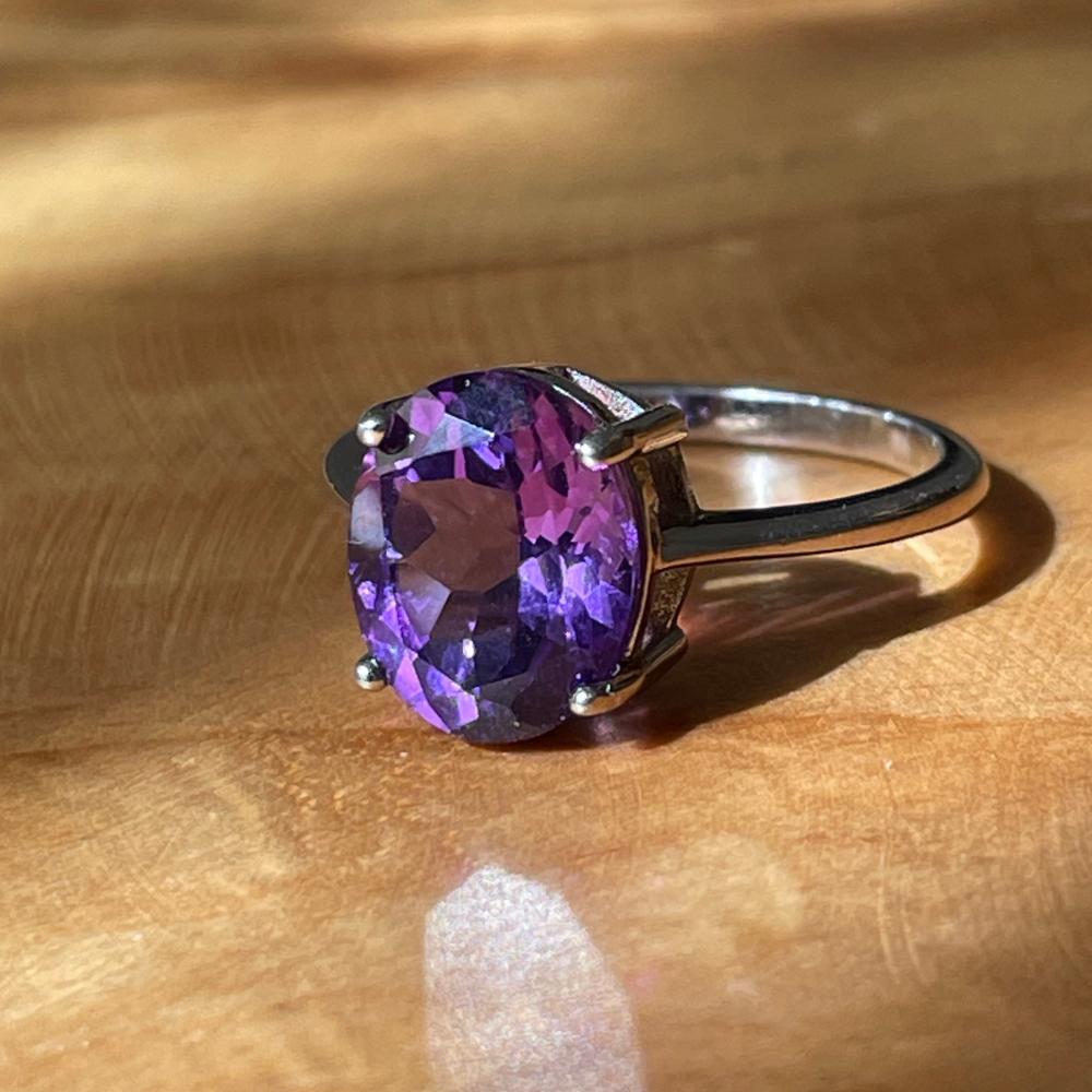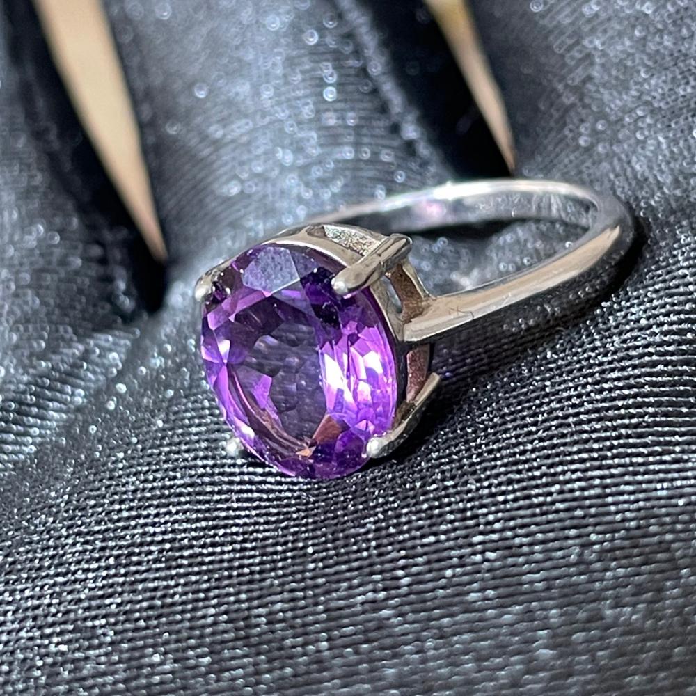 خاتم من حجر الجمشت الطبيعي فضة (925)